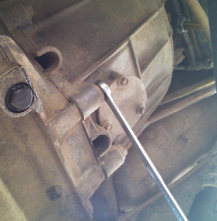 Now at the back of the sump, there is 4 bolts running forwards that go through the bell housing and into the sump. Remove all 4 of these.